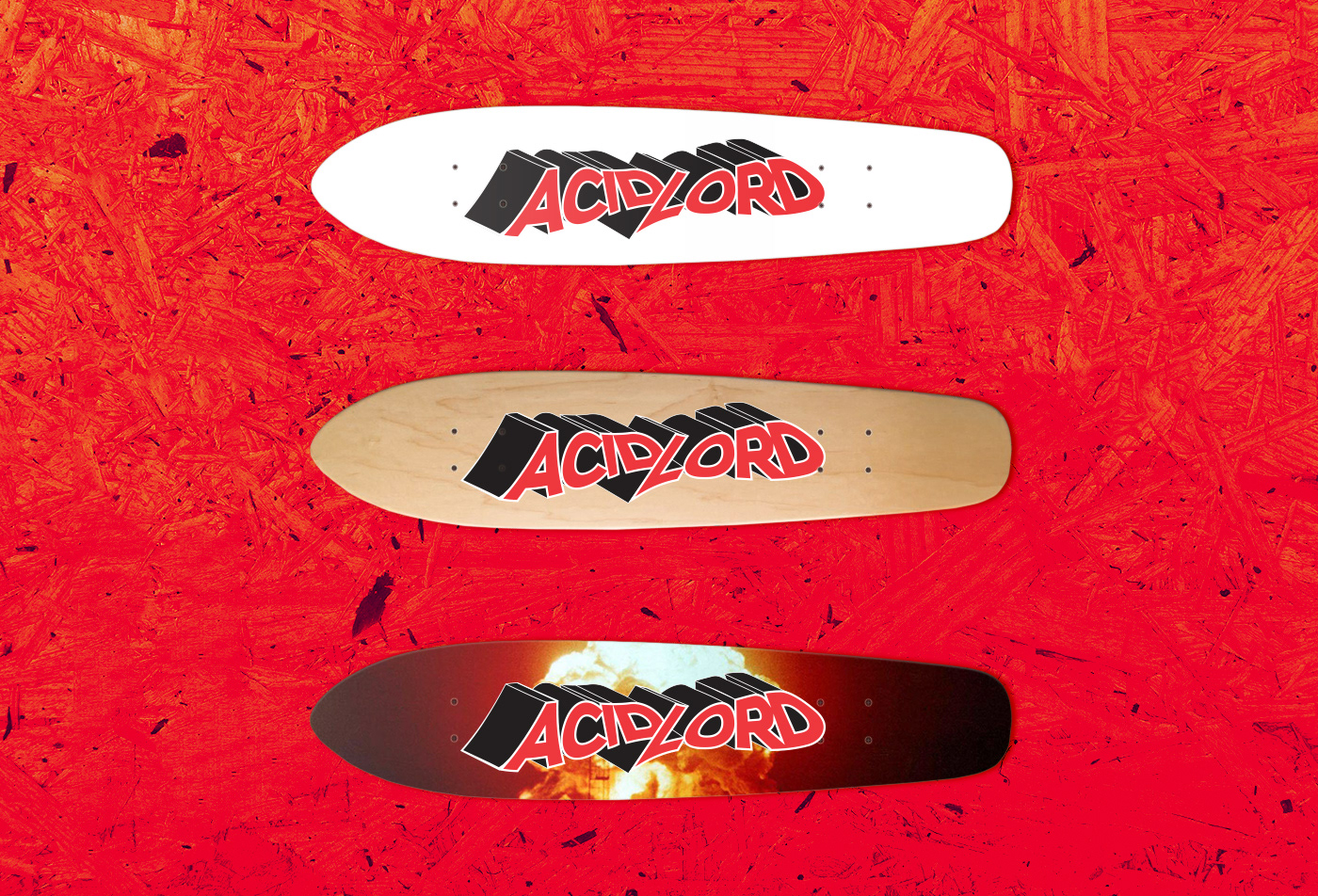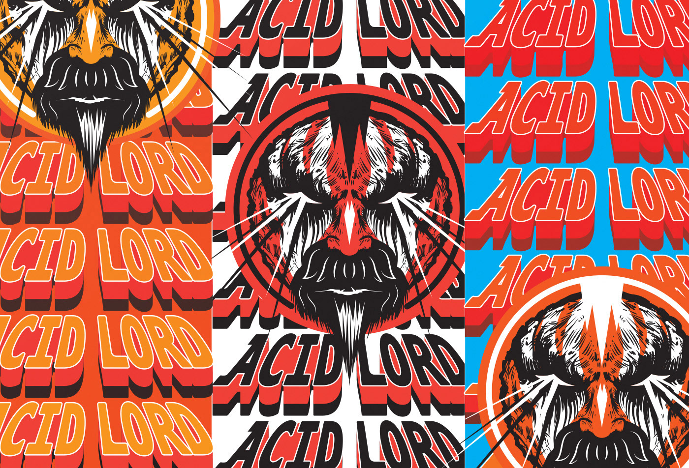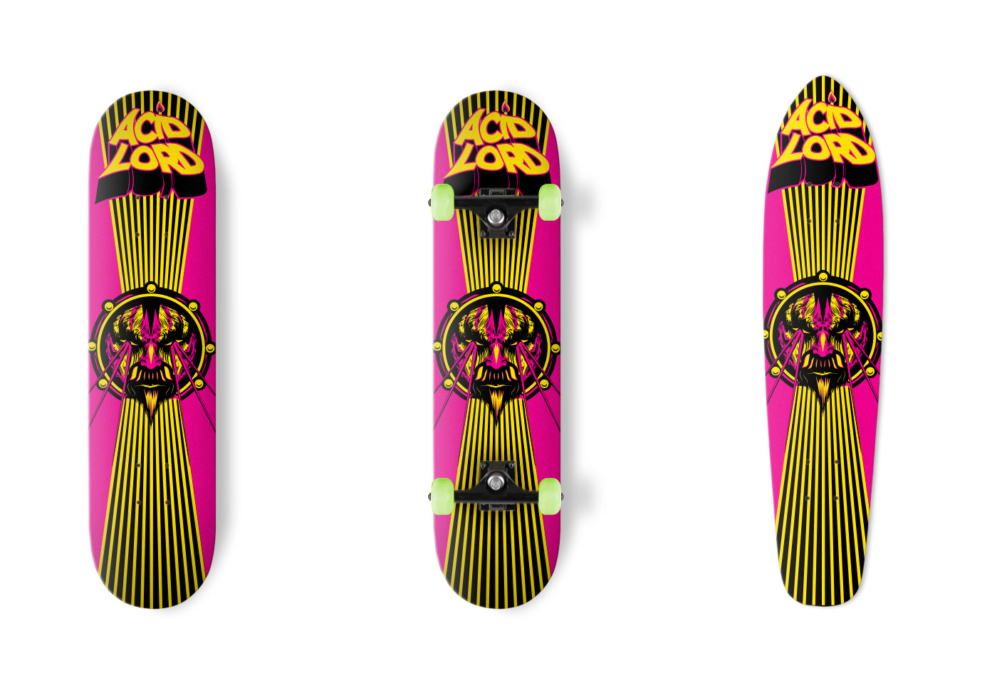 I worked closely with Acid Lord Skateboards to develop logos and branding as well as a little bit of illustration work. We sat down and fleshed out a couple concept illustrations over a weekend and then went from there. Very cool guys to work with.