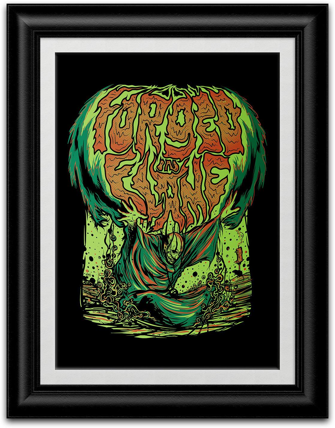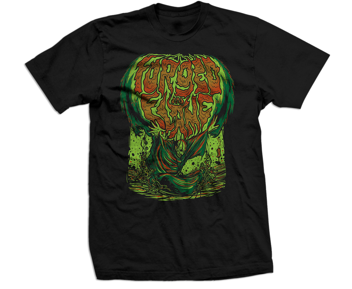 3 color T-shirt illustration with some half-toning for the band Forged in Flame.