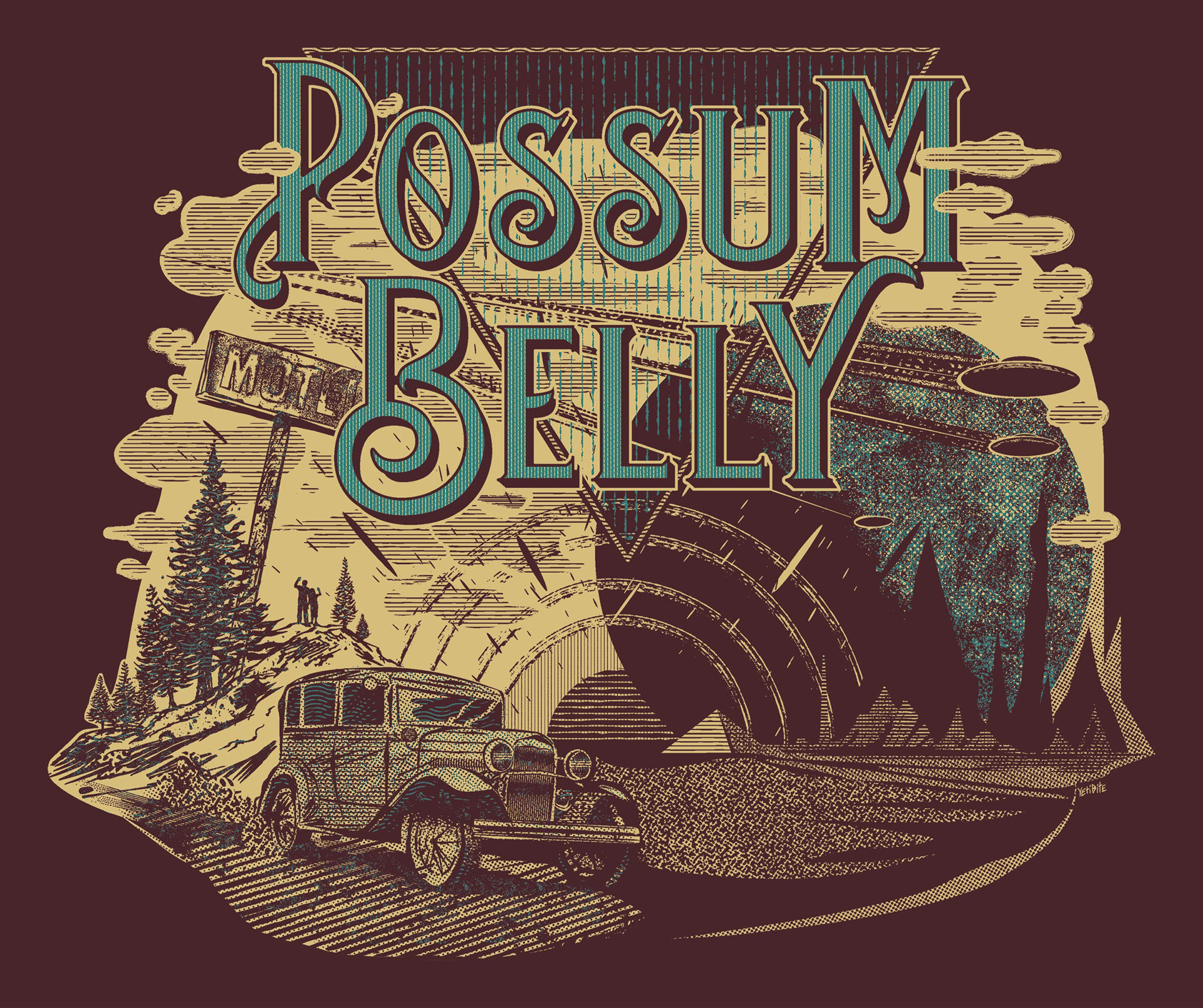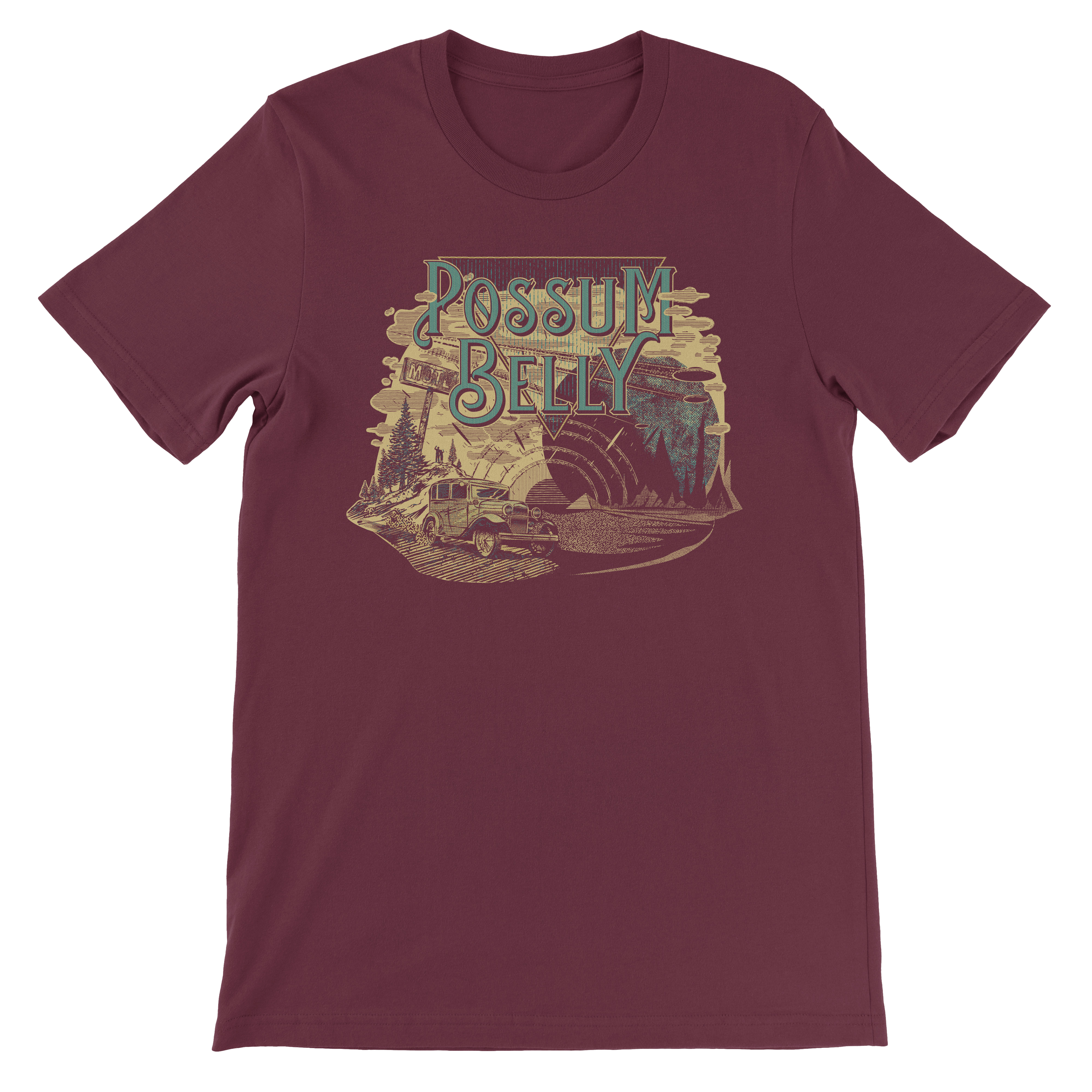 Vintage Sci Fi illustration concept used for merch for my Detroit rock buddies Possum Belly.