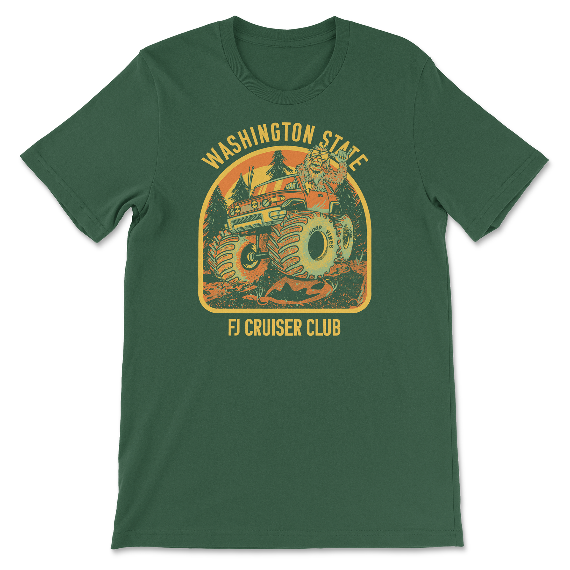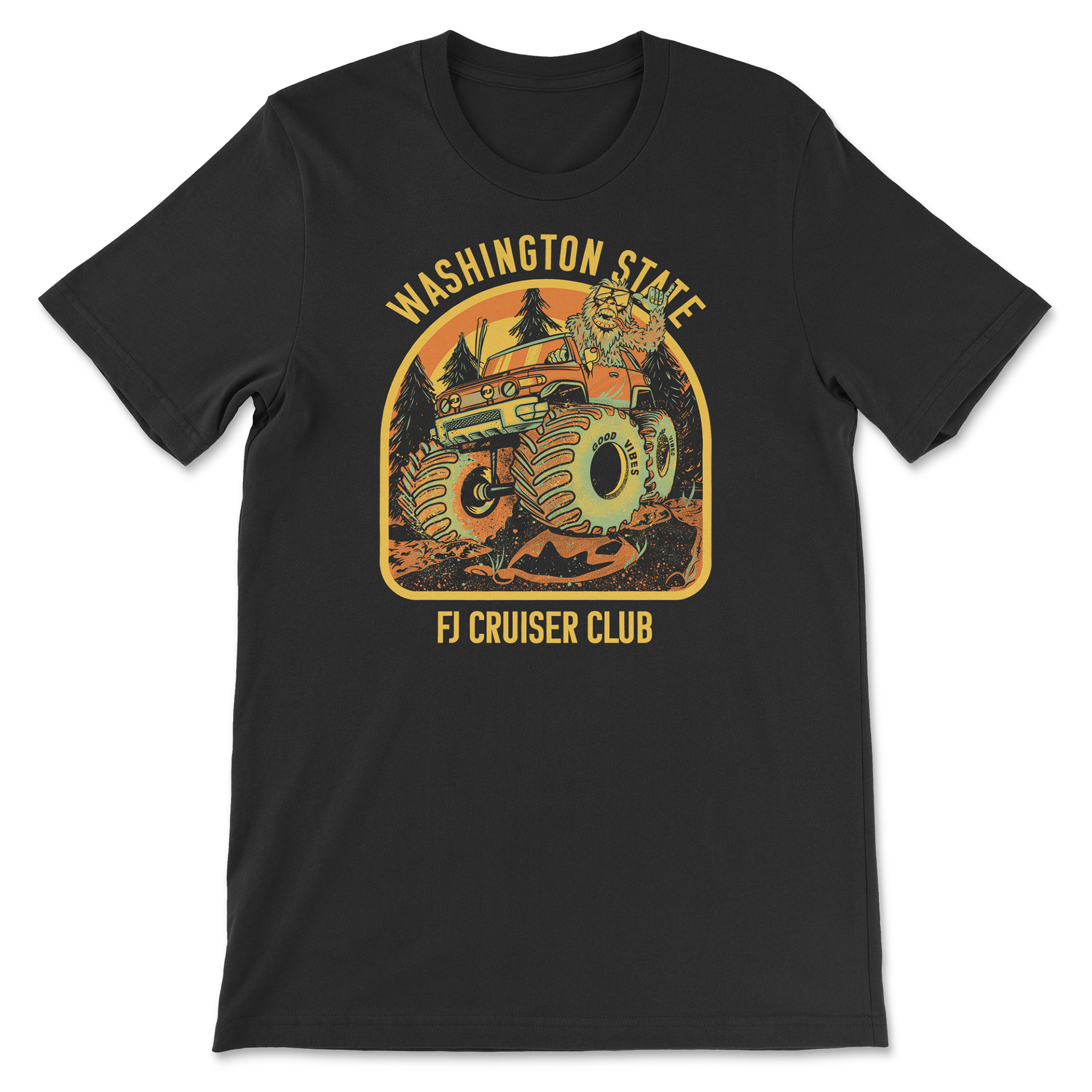 The Washington State FJ Cruiser Car Club hired me to design and illustrate their new club shirt. They really wanted a big foot driving so I was super excited to build this beast of a shirt design for them. They loved the final design.